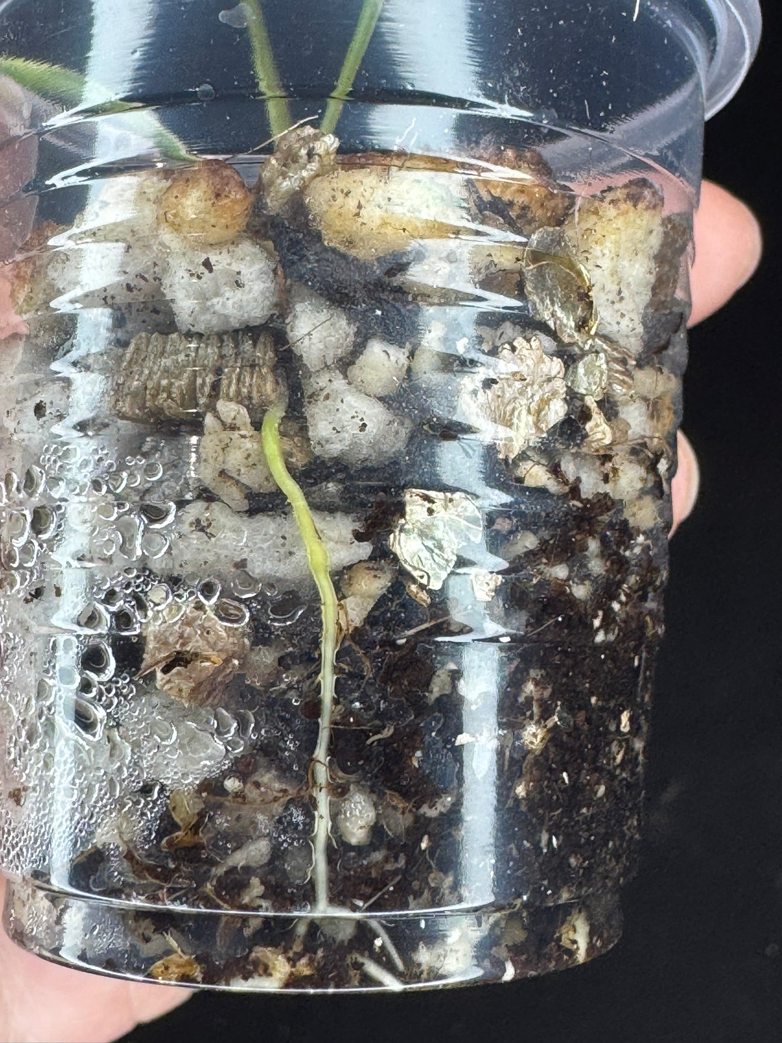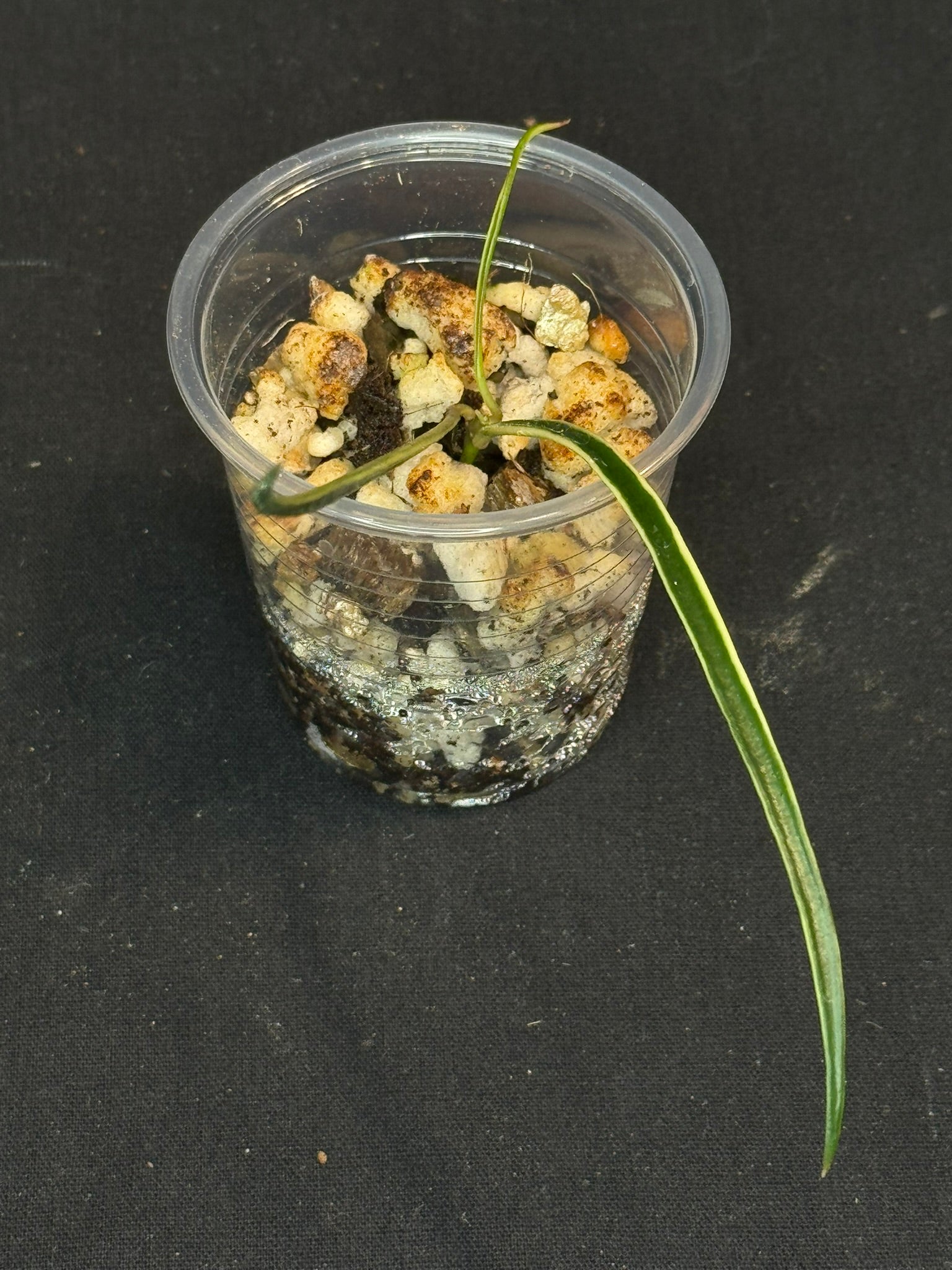 Hoya acicularis albomarginata, special leaves. Well-rooted in 3oz cup with mix media.