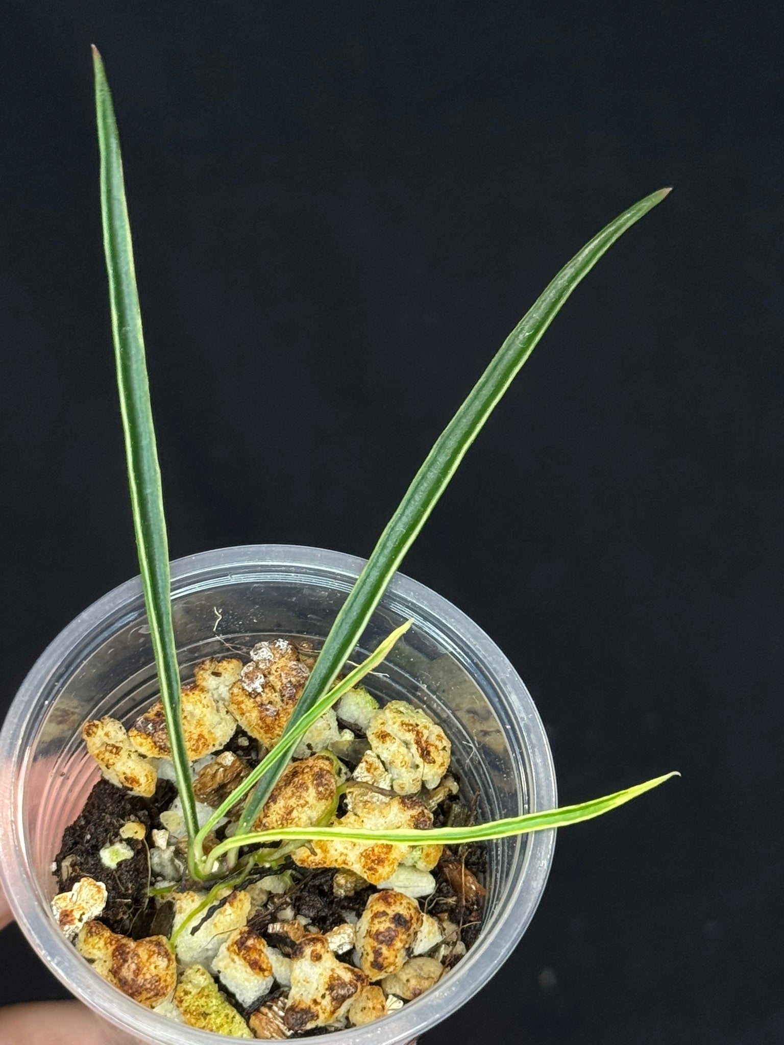 Hoya acicularis albomarginata (#1), special leaves. Well-rooted in 3oz cup with mix media.