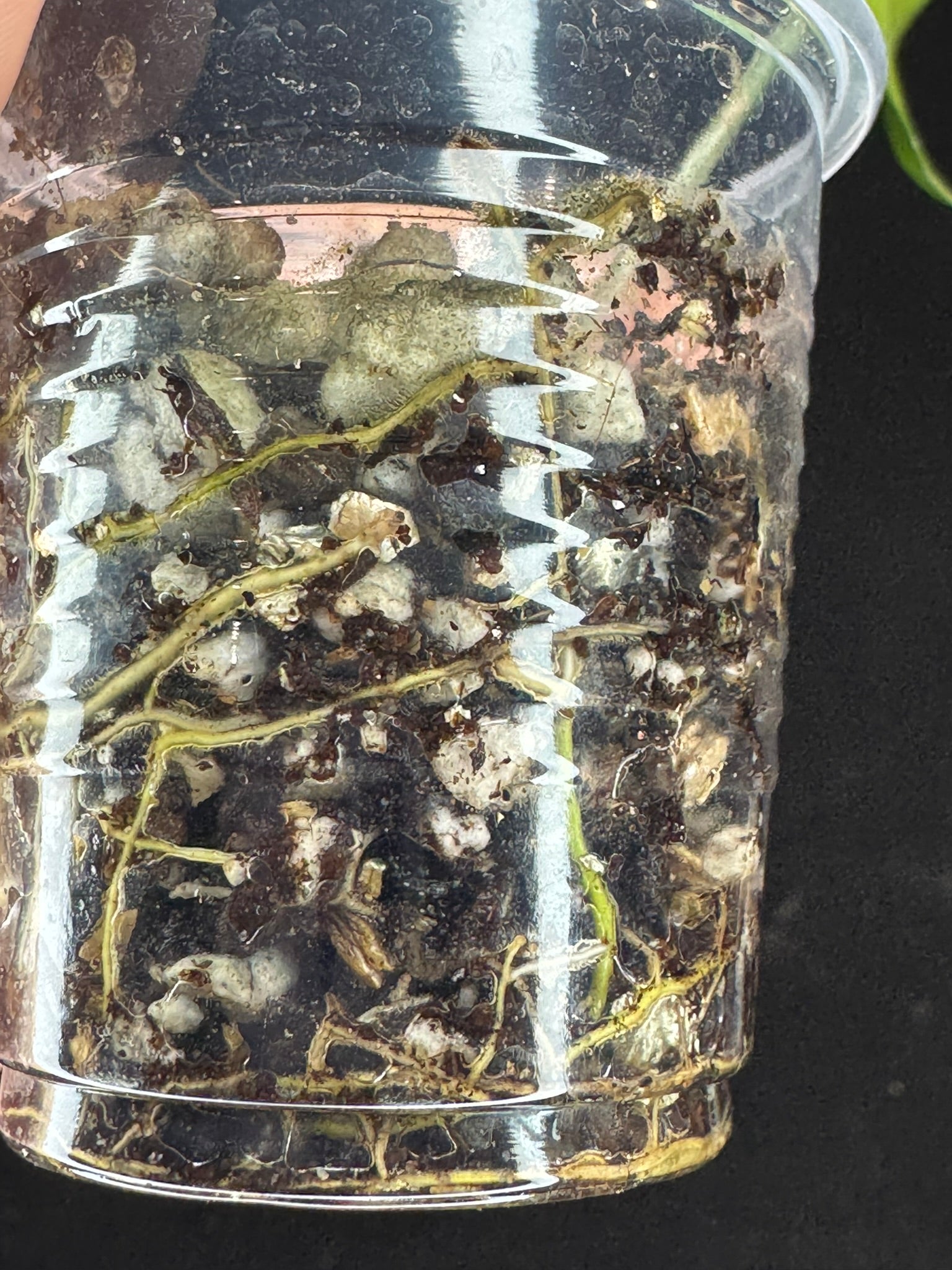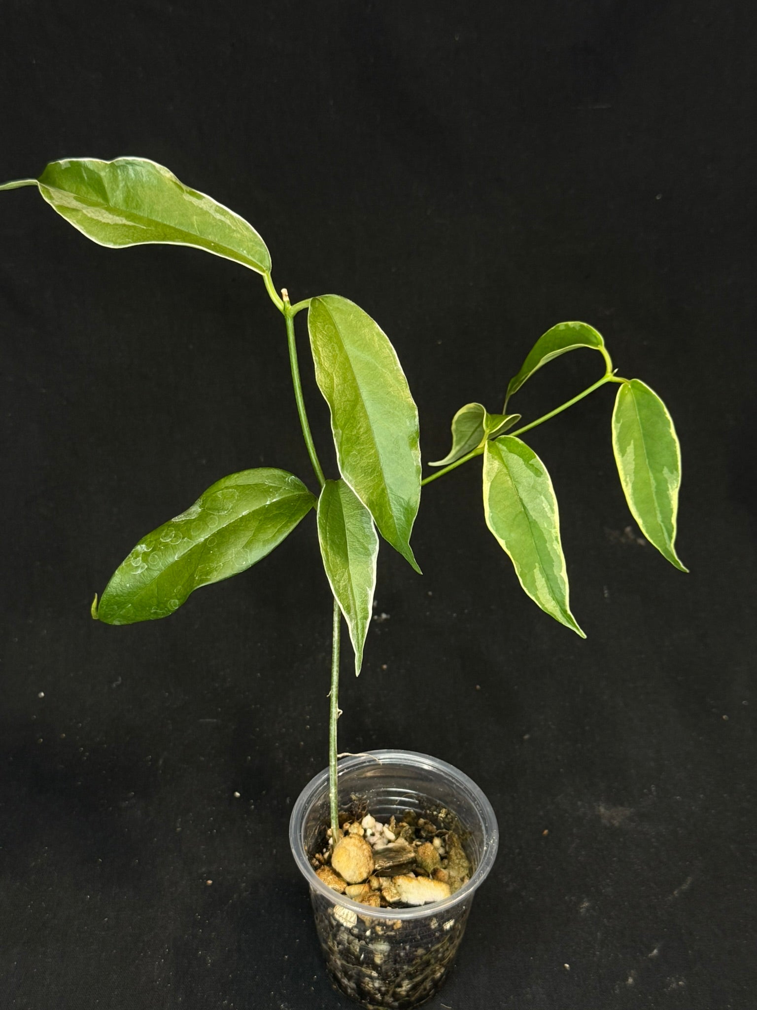 Hoya Buotti Albomarginata (C1), nice water-color variegation. Well rooted in 3oz cup with mix media.