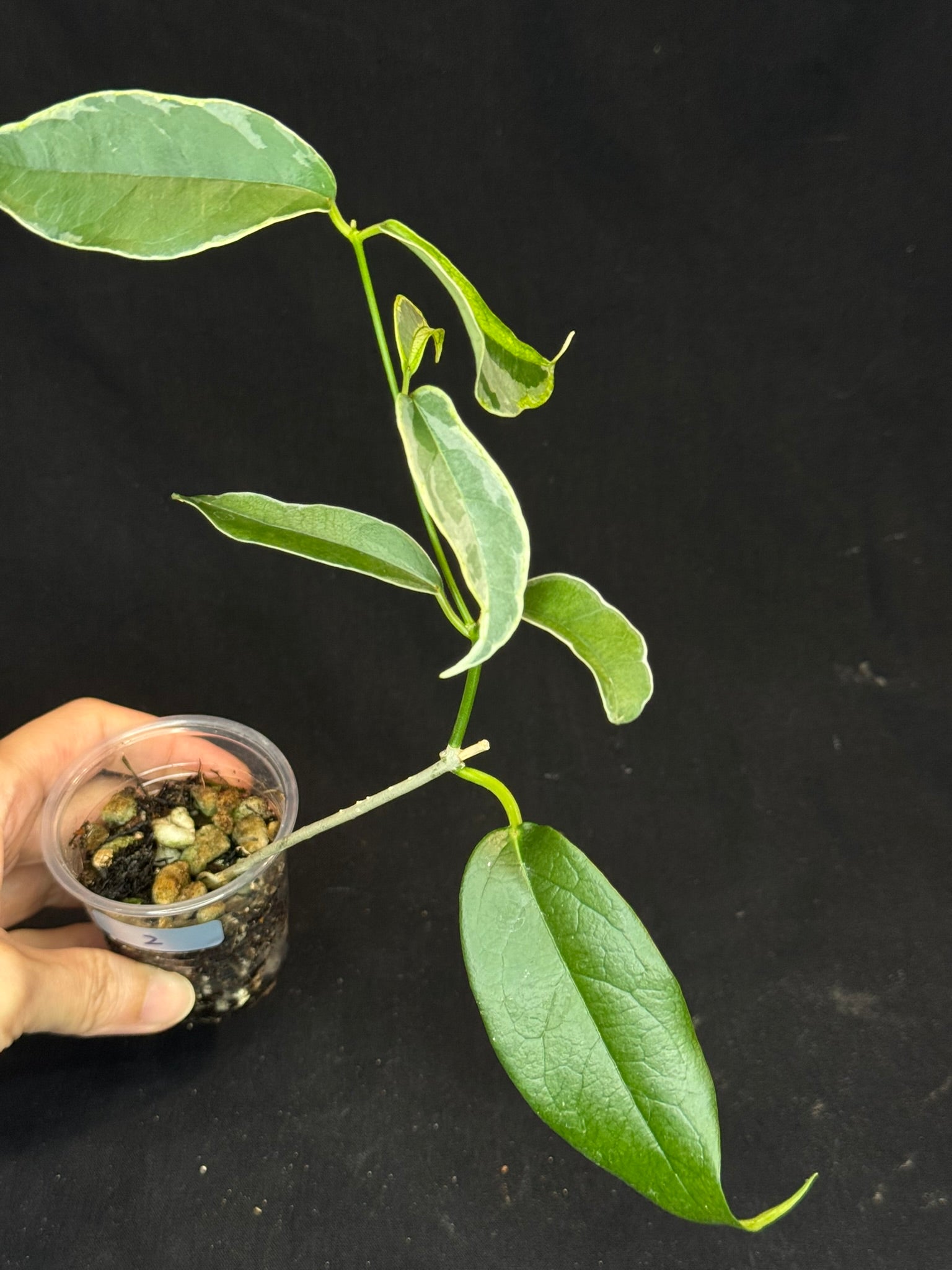 Hoya Buotti Albomarginata (#2), nice water-color variegation. Well rooted in 3oz cup with mix media.
