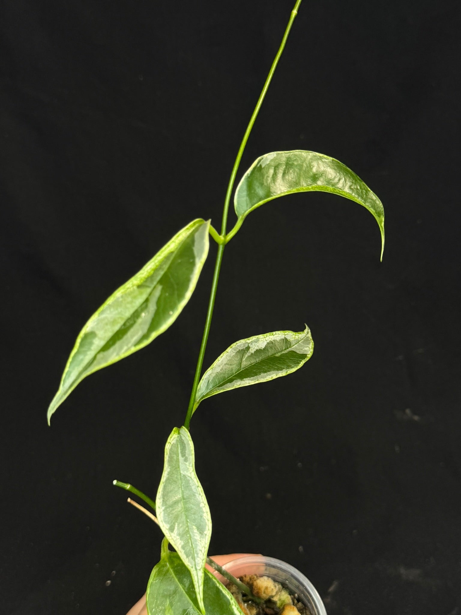 Hoya Buotti Albomarginata (#2), nice water-color variegation. Well rooted in 3oz cup with mix media.