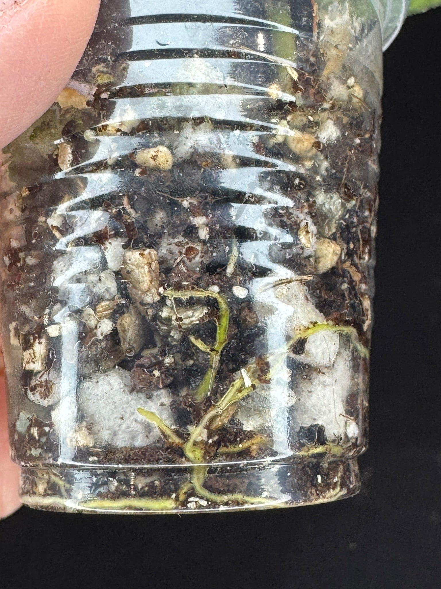 Hoya forbesii silver, nice silver green leaves. Rooted in 3 oz cup with PON.