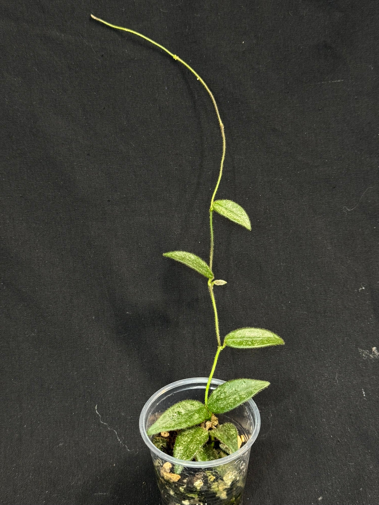Hoya Lyi Splash, attracting splashy furry leaves, rare hoya. Rooted in 3oz cup with mix media.