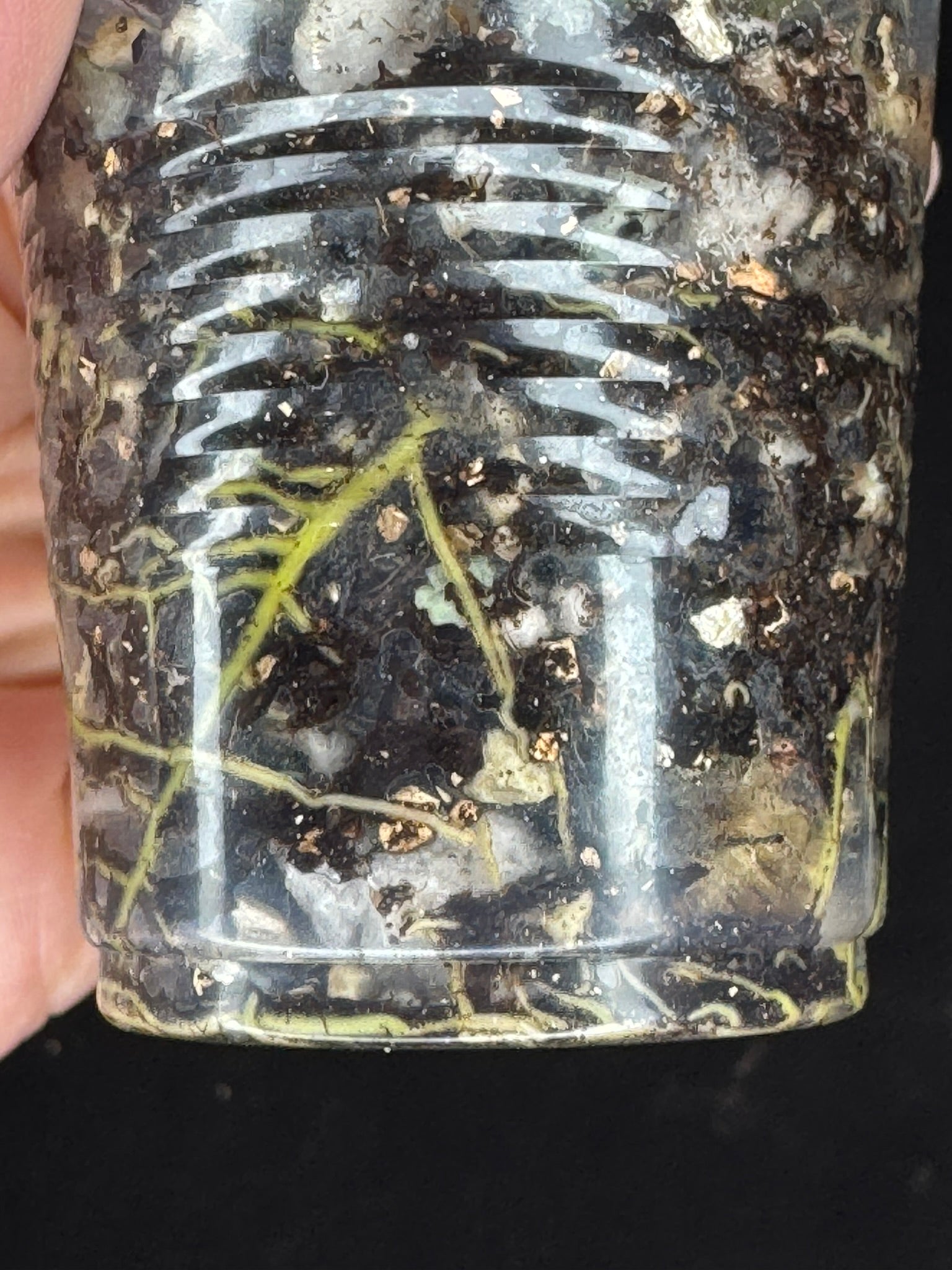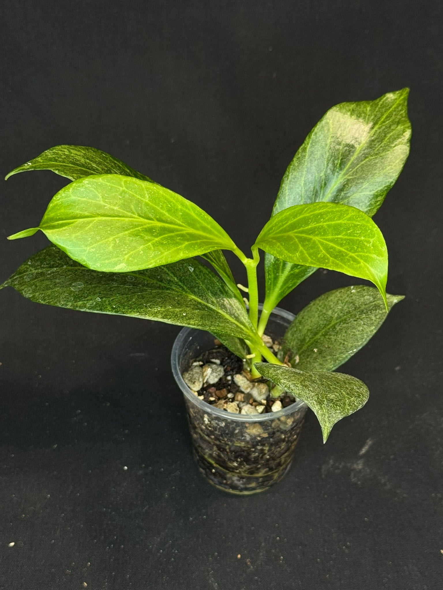 Hoya obscura silver, nice silver green leaves. Rooted in 3 oz cup with mix media.