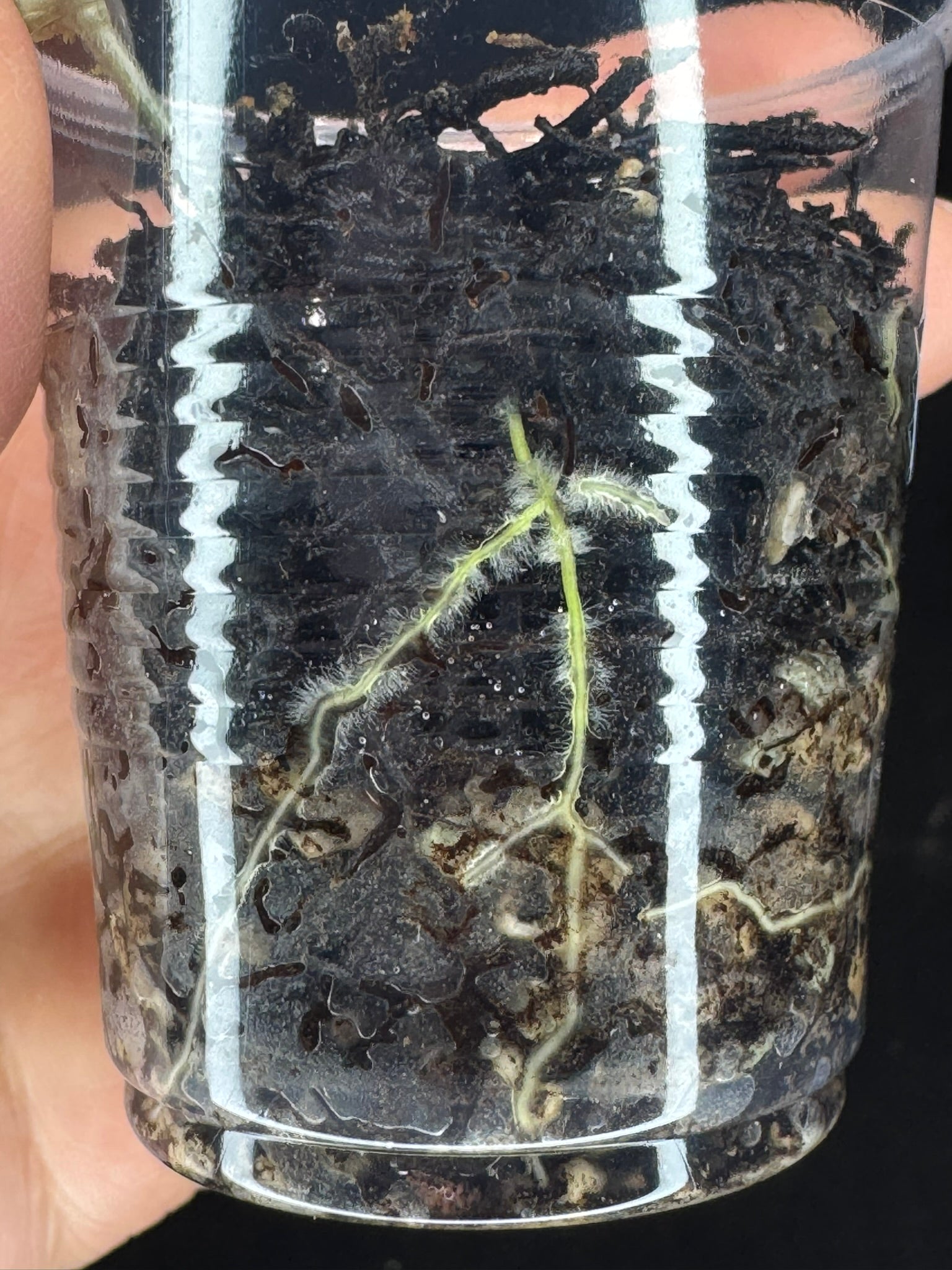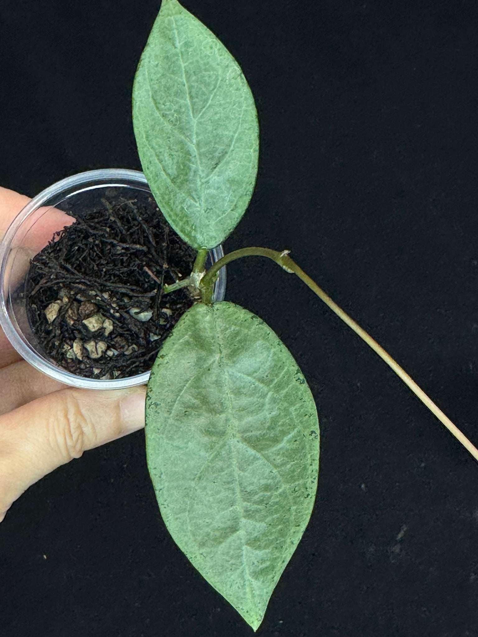 Hoya lai chau silver, silvery light green leaves with new growth, rare. Well-rooted in the 3oz cup with mix media.