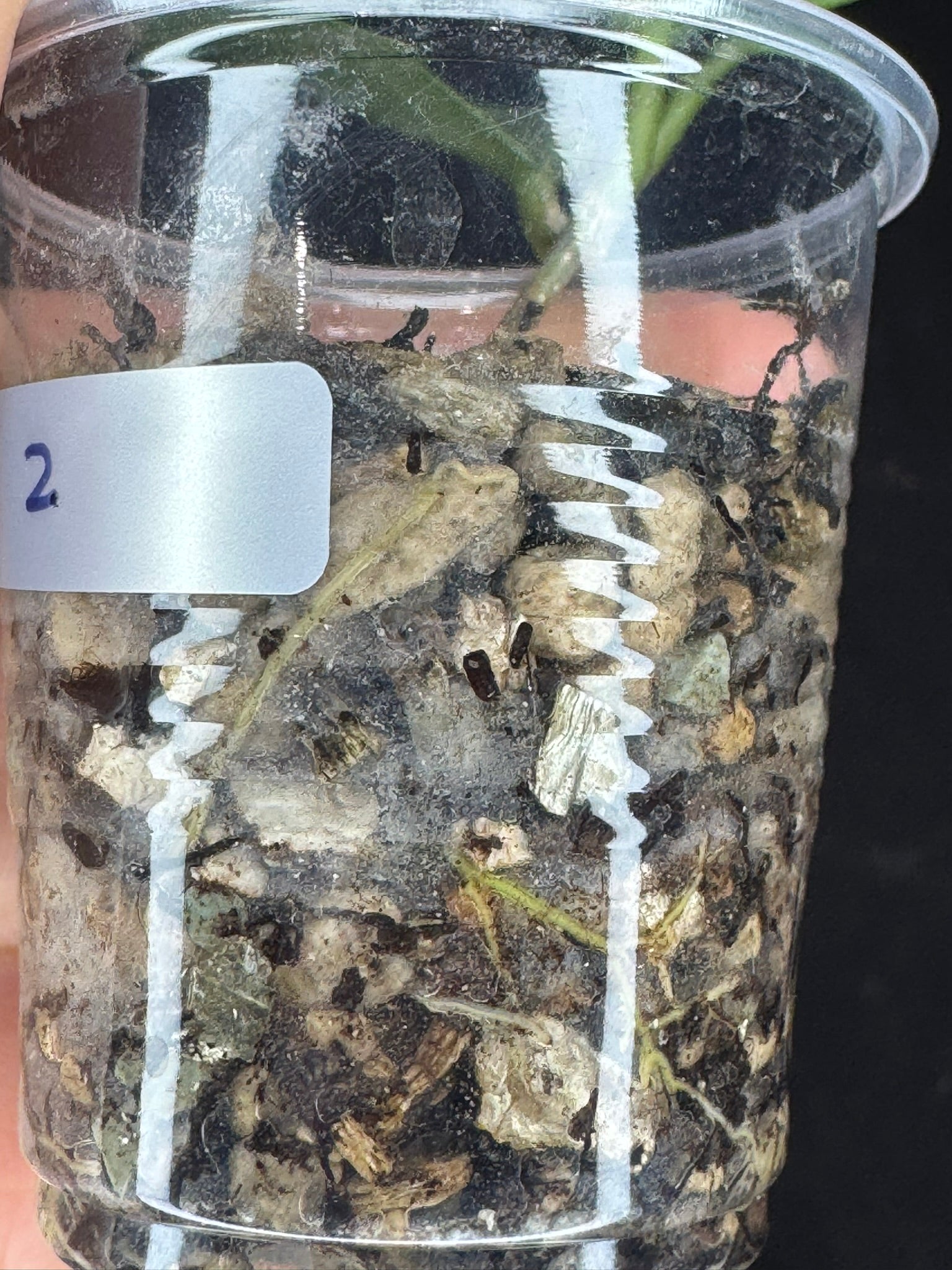 Hoya lai chau silver (#2), silvery light green leaves with new growth, rare. Well-rooted in the 3oz cup with mix media.