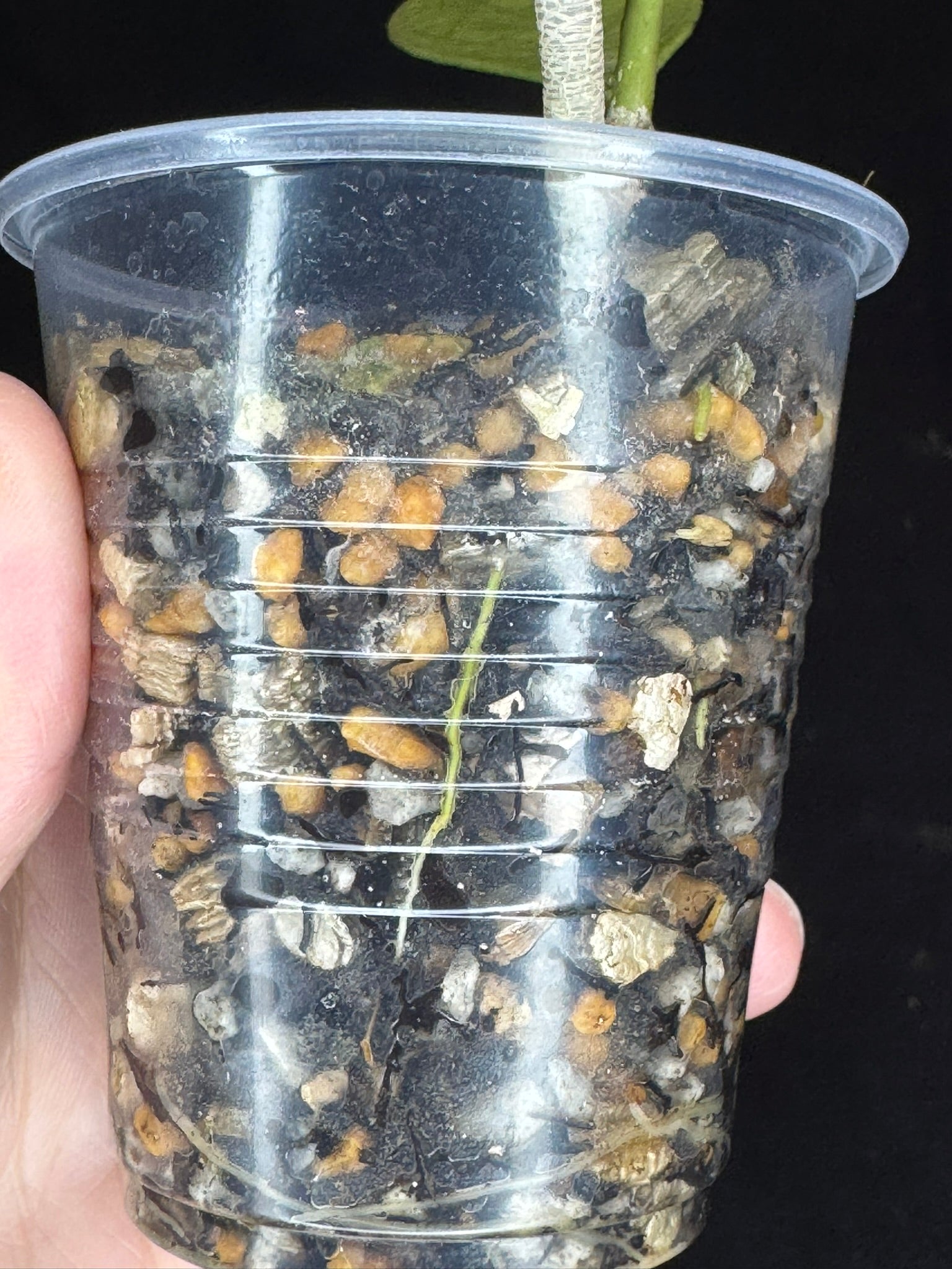Hoya germany silver, silvery light green leaves with new growth, rare. Well-rooted in the 9oz cup with mix media.